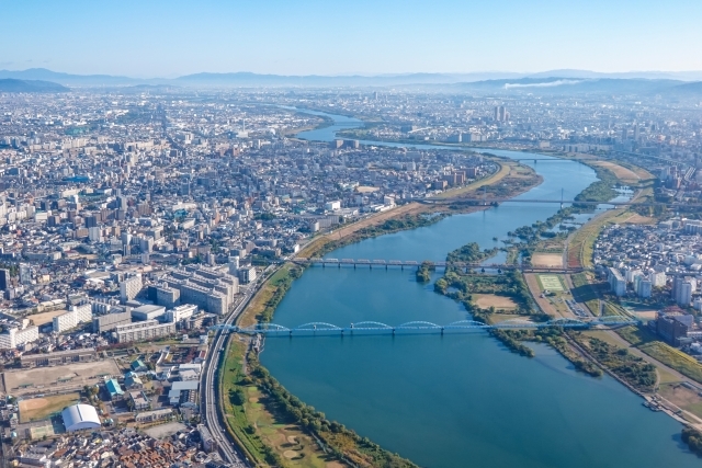 琵琶湖から大阪湾に注ぐ日本の一級河川。